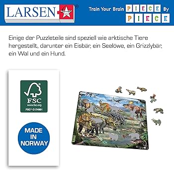 Larsen FH31 Rahmenpuzzle für Kinder I Dinosaurier in der