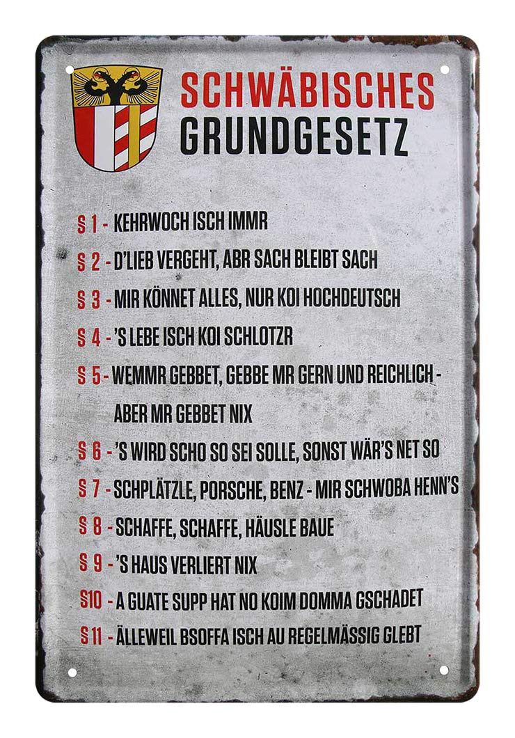 Amazon.de: Blechschild Schwäbisches Grundgesetz Metallschild