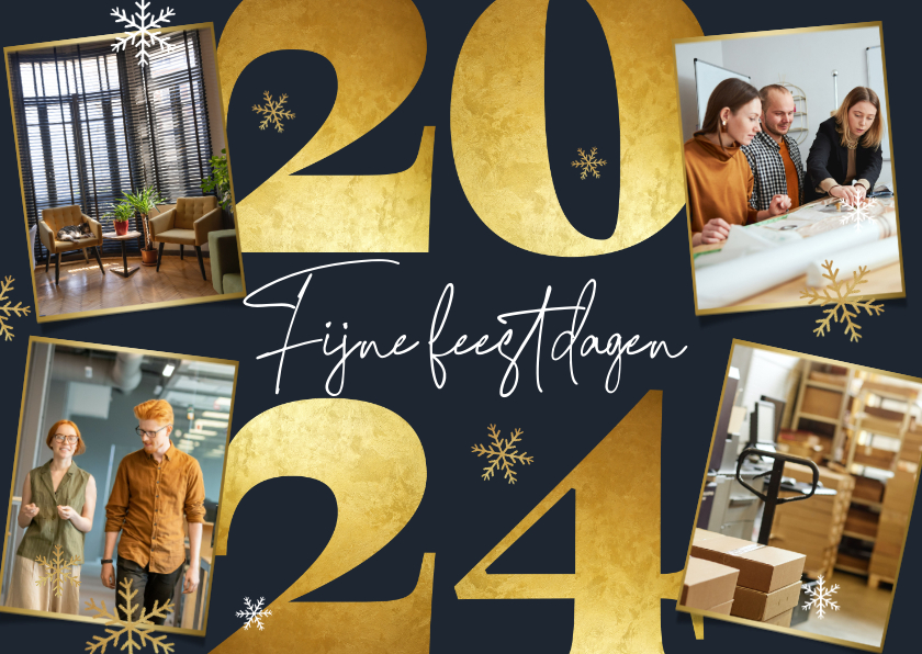 Zakelijke kerst kaart 2024 goud eigen foto’s of | Kaartje2go